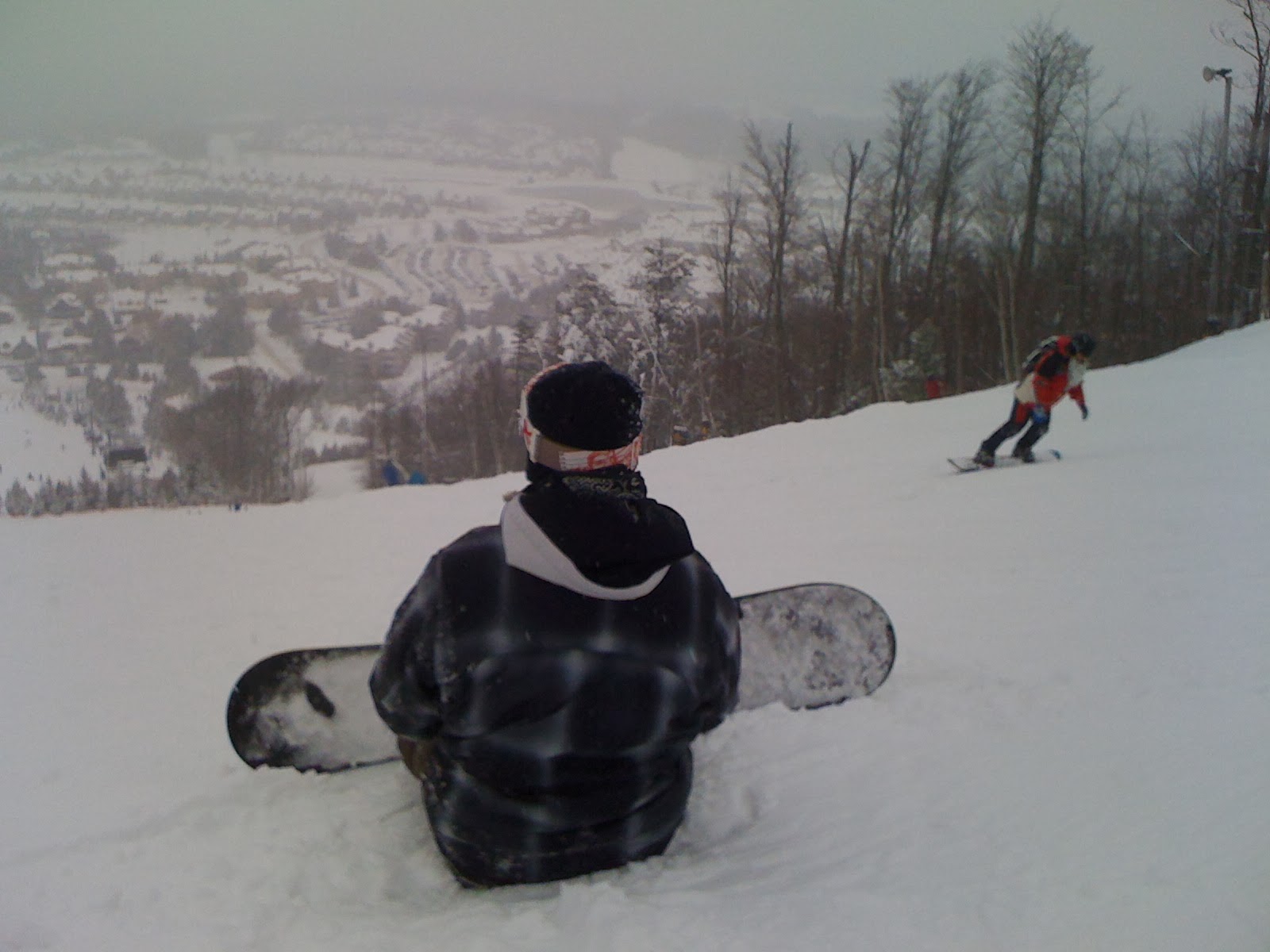 Mason and I headed to the hill today. Temps were just as cold as yesterday but the winds were allot less and I had 2 pairs of socks on! Did a run on Cruiser then headed to the village meeting up with Patrick. We checked out Happy Valley open for the first time this season. It was snowing heavily and there was tons of deep powder to be found everywhere. The main runs were a bit tough with the snow piling up here and there but overall its was pretty good conditions. Got stuck on the century express for about 10 min ... my feet got really cold. When we took a lunch break I took the boots off and my feet were quite painful for 10 minutes as they warmed up ... so much for the second layer. I left Mason at the Central Cafe , he was getting picked up by Amber heading to Wasaga for the weekend. I headed home because I was working at 4pm.